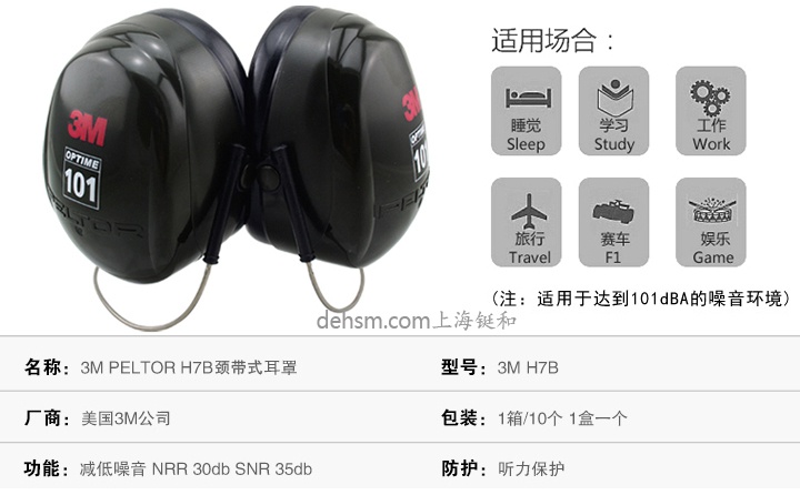 3M H7B頸帶式降噪隔音耳罩高性能防噪音耳罩